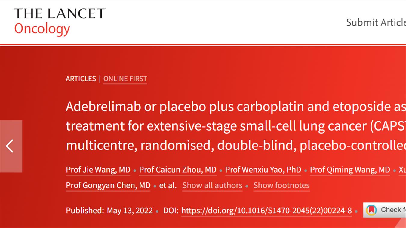 六合联盟卡瑞利珠单抗联合阿帕替尼最新研究成果荣登《柳叶刀·肿瘤》